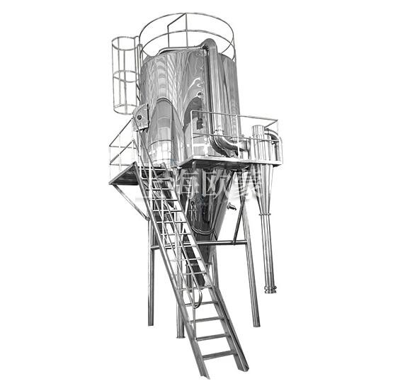 压力式喷雾干燥制粒机是采用压力式雾化器借助隔膜泵的压力将溶液或浆状的物料粒雾化成细微液滴,使表面积显著增大,经与热风进行充分热交换得以快速干燥(十几秒或几十秒),从而得到粉体或细小粒产品的设备。